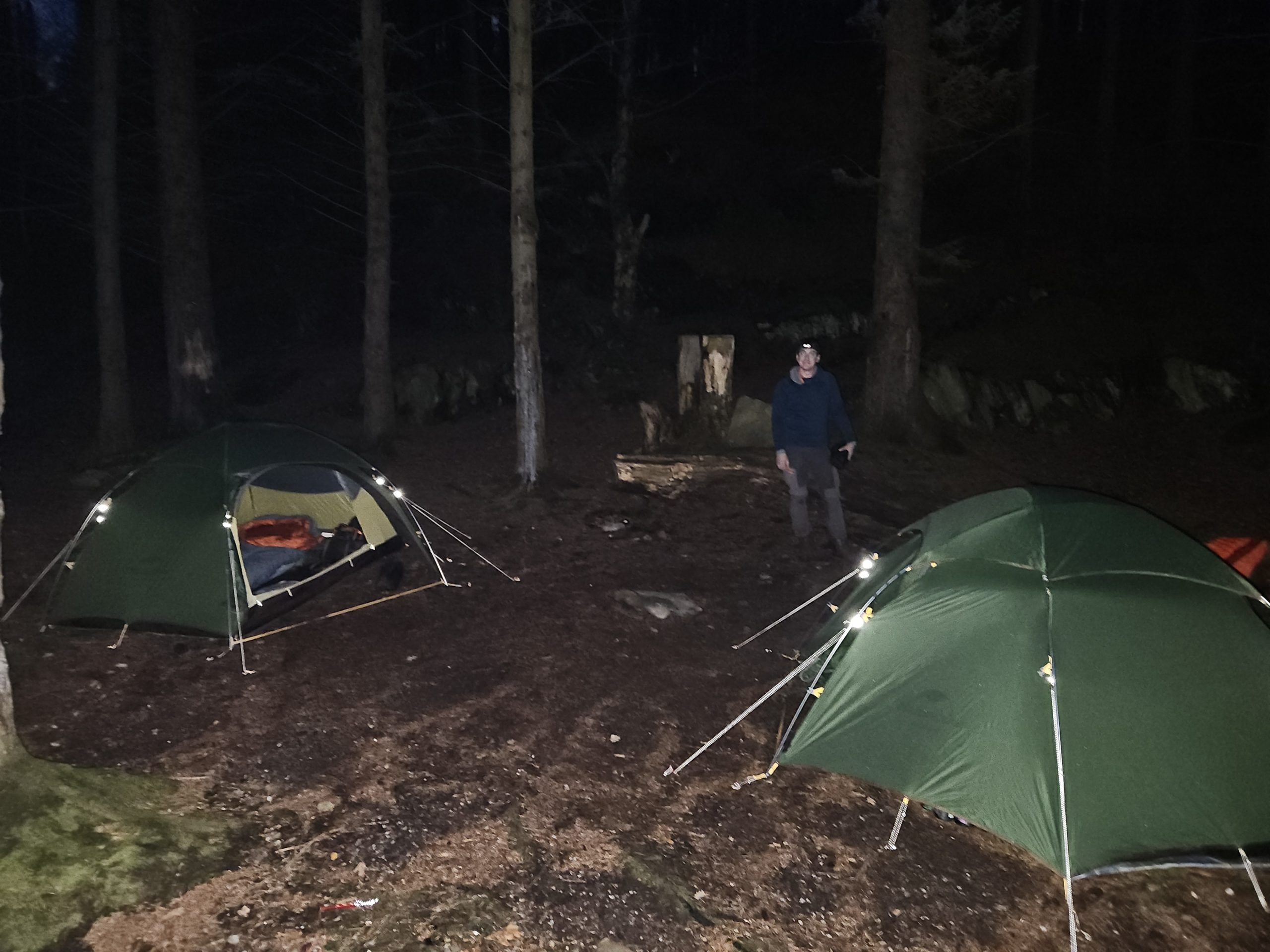 We sat around a broken old bench and obviously consumed some beer, The eerie ambiance did not help the stories of the legendary kelpies—the shape-shifting water spirits that are said to inhabit the loch, our head torches casted long shadows that dance across the bothy’s walls. The night deepens, and an otherworldly stillness settles over the landscape, broken only by the occasional hoot of an owl or rustle of leaves.